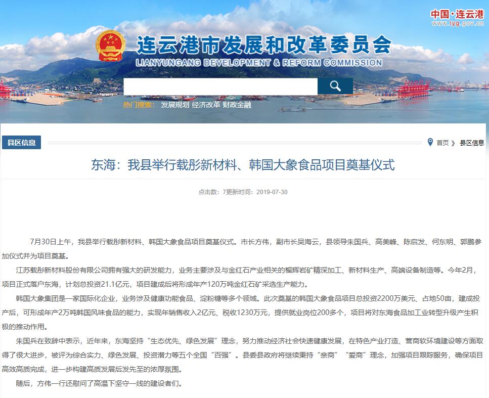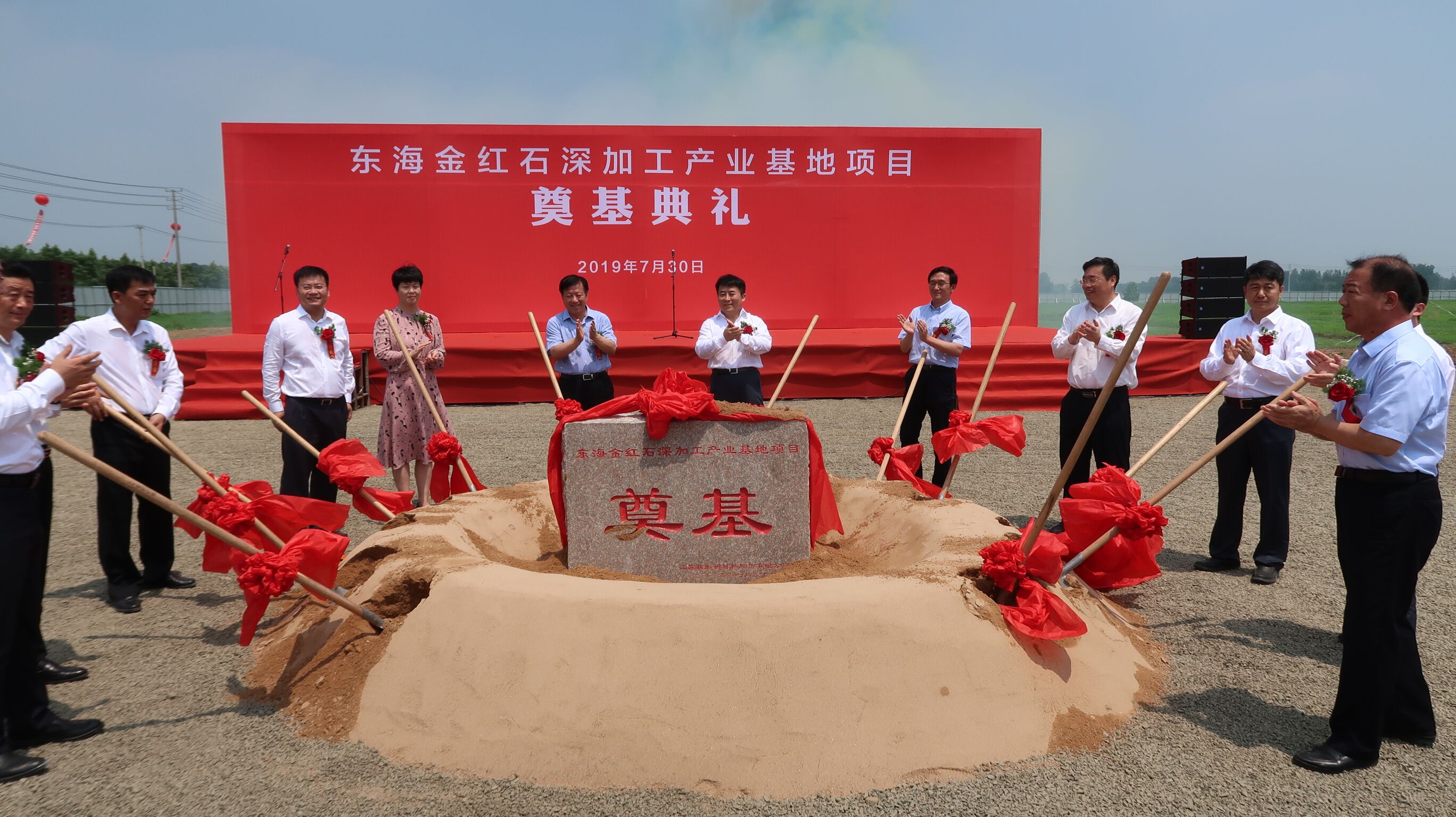 7月30日上午,日照石榴石礦業(yè)東海項目—江蘇載彤新材料金紅石深加工項目在東海縣舉行開工奠基儀式,連云港市長方偉,副市長吳海云,東海縣領(lǐng)導(dǎo)朱國兵、高美峰、陳啟發(fā)、何東明、郭鵬參加儀式并共同為項目培土奠基。載彤新材料金紅石深加工項目作為縣、市重點推進項目受到各方領(lǐng)導(dǎo)和媒體的關(guān)注,連云港市發(fā)展和改革委員會并對奠基儀式進行了跟蹤報道。